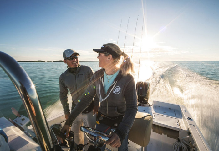 Um alternador potente – 60 A no motor de popa de 150hp e 35 A nos motores de popa de 75 a 115hp – ajuda a manter as baterias carregadas e os componentes eletrônicos funcionando durante todo o dia.