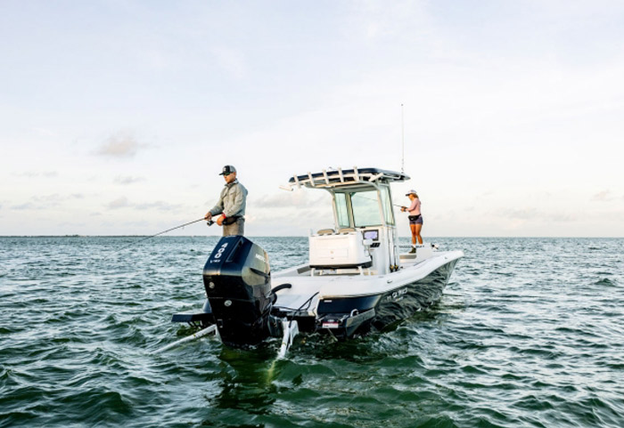 Os controles Digital Throttle & Shift (DTS) proporcionam mudanças suaves e silenciosas e resposta instantânea do acelerador, sem hesitação. Você pode melhorar ainda mais o manuseio e o desempenho com a Direção elétrica disponível para barcos multimotores. Silencioso e ultra-responsivo, o sistema consome menos da metade da energia elétrica da direção eletro-hidráulica. (Direção elétrica para monomotor com lançamento ainda este ano.)